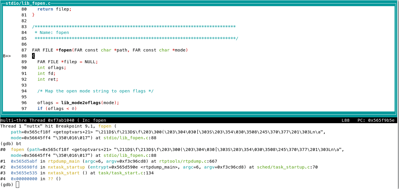 O NuttX é um sistema em constante evolução e, portanto, sujeito a comportamentos que fogem do padrão POSIX, seja porque não foram ainda implementadas ou porque foram parcialmente implementadas. Felizmente, a utilização do simulador do NuttX com o GDB nos permitiu identificar a raíz do problema sem que fosse necessária a utilização do sistema em um hardware real.