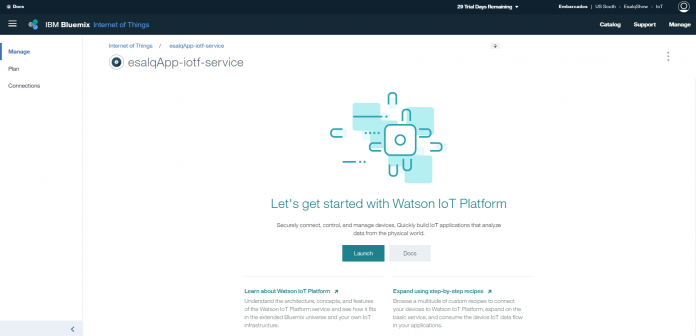 Clique em Launch para entrar no serviço IoT.
