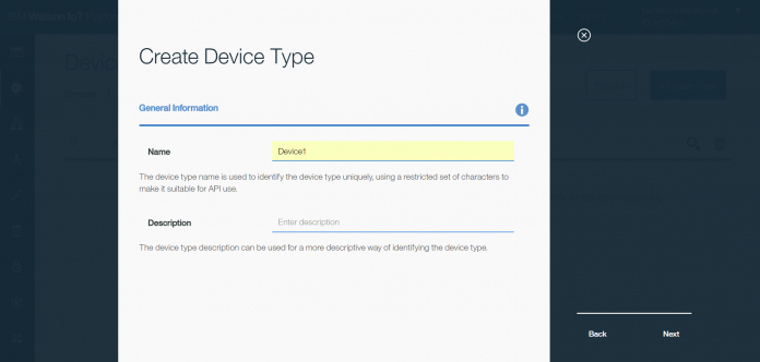 Clique em Create Device Type. Eu chamei o meu dispositivo de Device1.