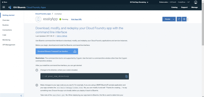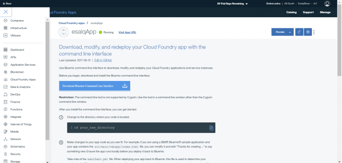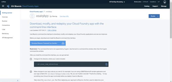 Clique no serviço de internet of things criado pra sua aplicação. No meu caso o nome do serviço é esalqApp-iotf-service. Clique nele.