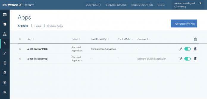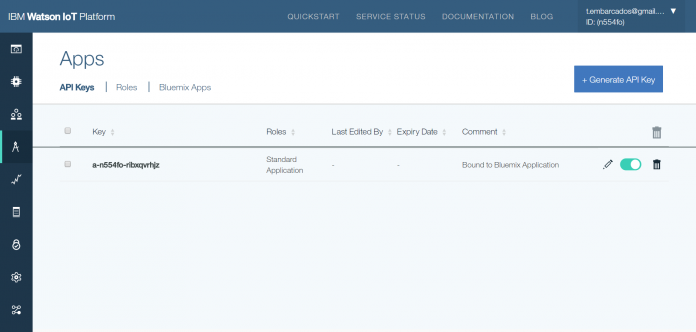 Clique em generate, para gerar uma nova API. Vamos nos conectar utilizando ela.