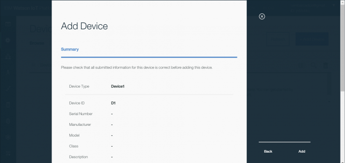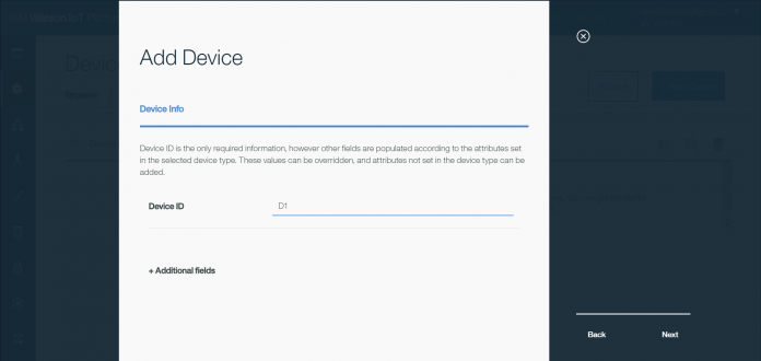 O tipo de dispositivo criado chama Device1, e o seu ID chama-se D1.