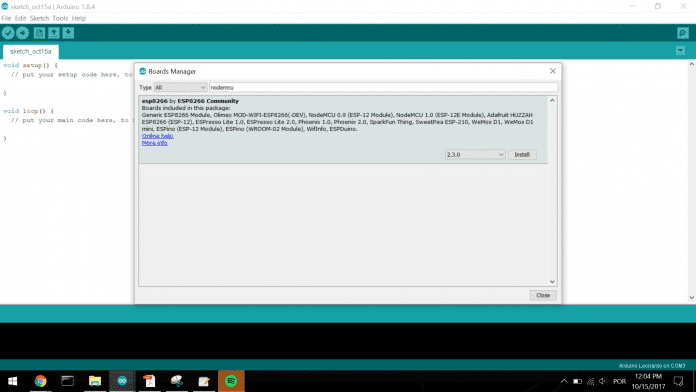Procure por NodeMCU e clique em Install.