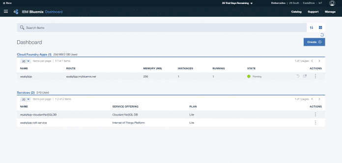 https://console.bluemix.net/catalog/ e vá até o Dashboard.