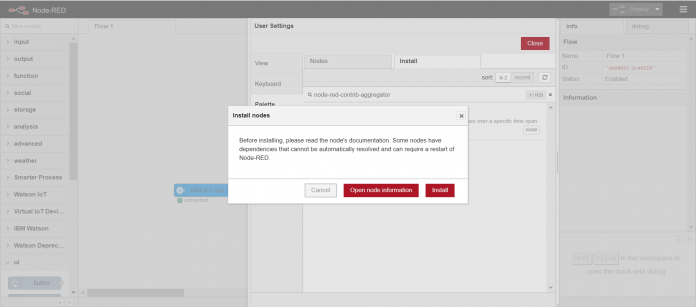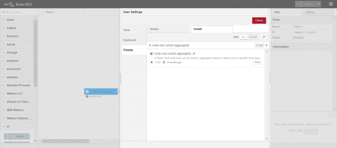 Clique em install. Procure por node-red-contrib-aggregator e selecione install para instalar.