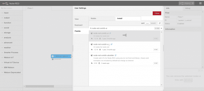 Procure por node-red-contrib-ui. Clique em install.