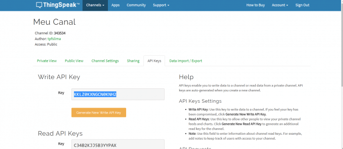 Clique em API Keys e copie a Key para que possamos utilizá-la no firmware do módulo eletrônico.
