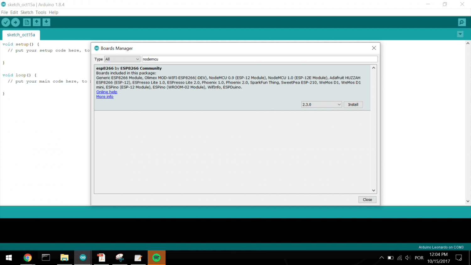 E então selecione a placa utilizada nesta experiência. Procure por NodeMCU.