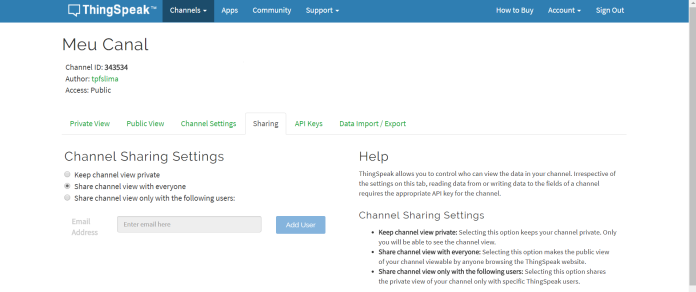 Clique em Sharing e marque a opção Share channel view with everyone para que o canal fique público e acessível a todos.