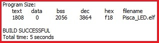 Se as bibliotecas carregadas e o código forem compilados com sucesso o compilador irá retornar informações como no exemplo abaixo.
