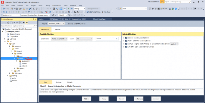 Passo 5 – Adicionar o driver do SDADC clicando no ícone e na área de busca digite SDADC: