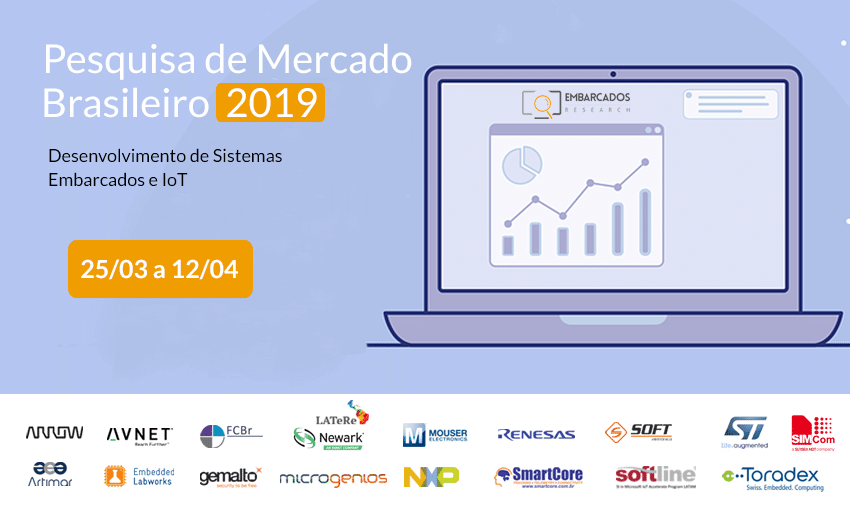 O Embarcados lança a Pesquisa sobre o Mercado Brasileiro de Desenvolvimento de Sistemas Embarcados e IoT 2019, com o objetivo de entender a dinâmica e as particularidades do mercado brasileiro de desenvolvimento de sistemas embarcados, hardware e IoT.