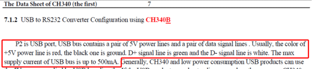Mesmo trabalhando com o programador de ESP-01 que abstrai o circuito em torno do CI CH340, é importante nos atentar-se em obedecer aos parâmetros de trabalho recomendados pelo fabricante do CI. Busquei pelo datasheet ou o esquemático do programador utilizado, mas não encontrei com exatidão para nos basearmos. Entretanto no datasheet do conversor Serial/USB CH340 há diversas recomendações de aplicação, em uma das aplicações o fabricante chega a afirmar que podemos obter uma corrente elétrica de 500mA da porta USB. Logo, caso você queira além de gravar, comunicar e utilizar a placa de programação como forma de alimentação do seu projeto, recomendo que antes atente-se ao valor de corrente elétrica que o seu projeto drena durante o funcionamento para evitar possíveis danos ao chip conversor serial/USB CH340, seu módulo Espressif ou sua porta USB do PC.