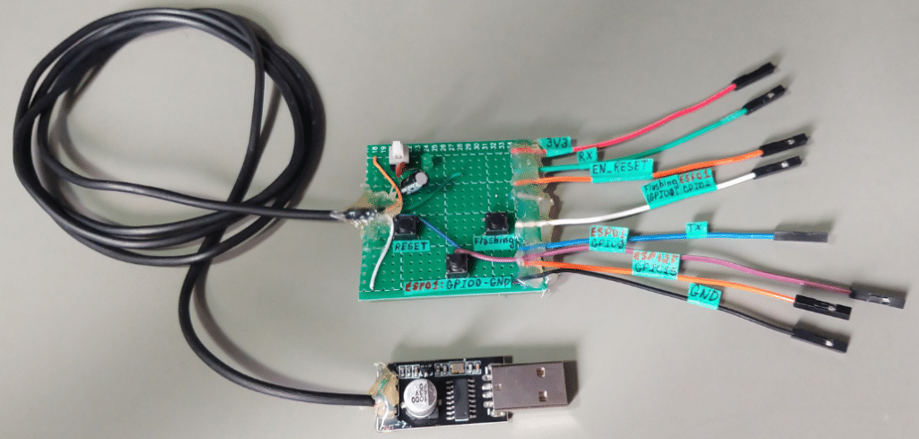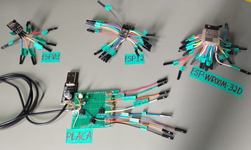 Fiz os testes no ESP01, ESP12F e ESP-WROOM-32D, e foi aí que eu resolvi o meu conflito de hardware; fazendo uma placa de programação genérica para todos os módulos citados, permitindo comunicação e gravação. E a solução para o conflito no meu projeto veio colocando na placa própria alguns terminais para gravar, comunicar e depurar pelo terminal serial.