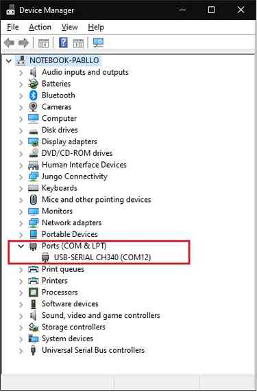 É importante relembrar a necessidade da instalação do driver do conversor Serial/USB CH340, como também a necessidade da instalação das placas/módulos Espressif dentro da IDE utilizada (Arduino IDE). Aqui no Portal Embarcados há diversos artigos ensinando como fazer.Cerifique-se de ter instalado em seu computador o driver do conversor serial como visto na Figura 6 (SO Windows 10).