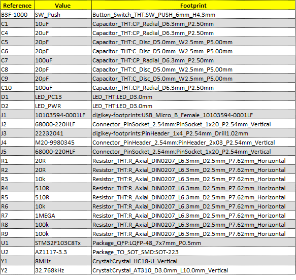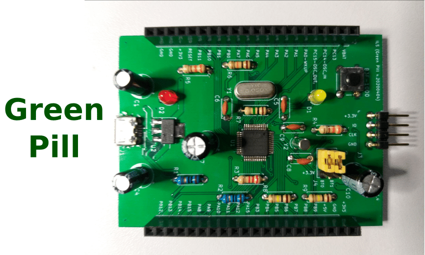 A primeira etapa de um projeto é definir o escopo do projeto. Nesse projeto eu defini que criaria uma PCB, cujo esquemático é o projeto da placa Blue Pill, porém, faria com uma máscara verde, com as dimensões de um Arduino UNO e chamaria de Green Pill. Como não havia limitação de espaço na PCB, então, poucos componentes seriam SMD. Também defini que a PCB e os componentes seriam importados da China, para viabilizar a montagem do protótipo.
