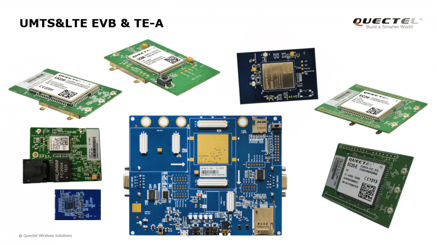 A placa de desenvolvimento e avaliação dos módulos 3G/LTE da Quectel é a EVB UMTS<EEVB-KIT, que suporta todos os módulos 3G/LTE incluindo Cat M1. Ela comporta os dois módulos Quectel a seguir e é ideal para os desenvolvedores que estão construindo sua primeira aplicação utilizando esses dispositivos. Ela foi desenvolvida exatamente para permitir o primeiro contato com os módulos que utilizam tecnologia de comunicação LTE da Quectel.