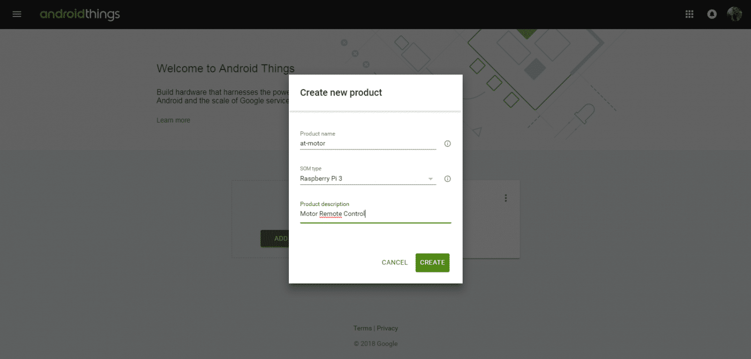 Para gerar a imagem você deve acessar o painel do Andrid Things, entrar e criar um novo produto: