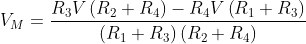 Observe que chegamos a duas equações iguais, as equações 12 e 17. Portanto, se a análise é feita levando-se em consideração R1 e R2 ou R3 e R4, o valor de Vm é o mesmo.