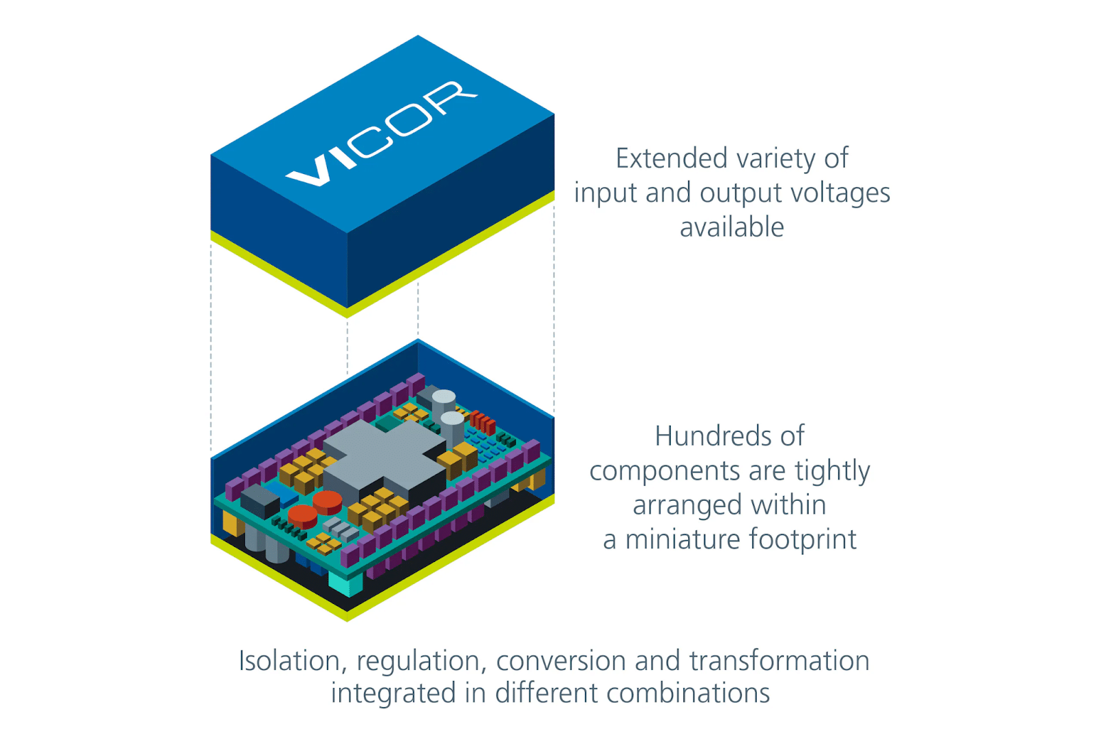 Com a garantia de módulos pré-qualificados, logística simplificada da cadeia de suprimentos e a capacidade de reutilizar facilmente módulos e dimensionar rapidamente as PDNs, os designers de sistemas de energia podem se concentrar na inovação e na otimização, em vez de lidar com as complexidades de uma solução discreta feita internamente. Ao escolher os módulos de potência de alta densidade da Vicor, os engenheiros podem alcançar redes de entrega de energia eficientes, confiáveis e escaláveis, economizando tempo e recursos valiosos para chegar mais rapidamente ao mercado.
