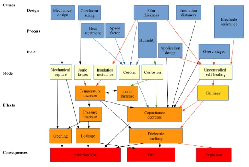 Entre os muitos tipos de capacitores, existem três grupos básicos e alguns de seus modos de falha associados: