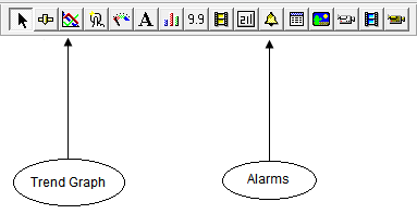 Em seguida, deve-se criar o elemento Graph, este permitirá que um gráfico de tendências possa exibir o comportamento de uma determinada tag em tempo real. O procedimento para a criação do mesmo é idêntica ao realizado para o text, bastando clicar no ícone correspondente e arrastar o mouse conforme o tamanho desejado.