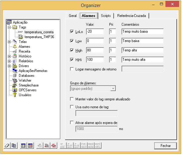 - tag.currentAlarm = 1 (Alarme muito baixo – LOLO);