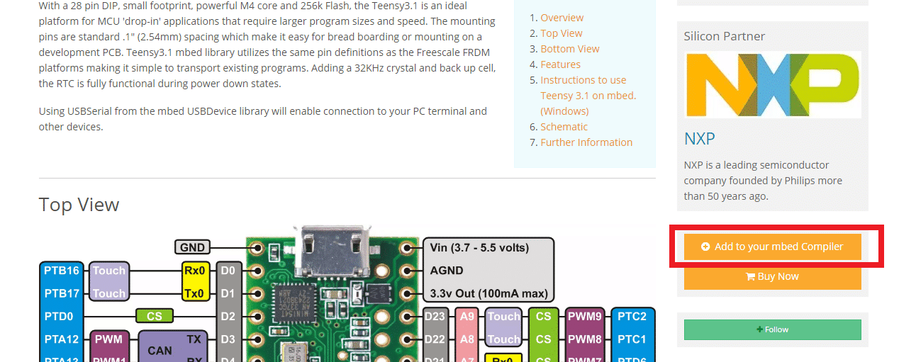 Antes de iniciar a programação, é necessário incluir a placa ao compilador mbed. Para isso basta acessar a página da Teensy 3.1.