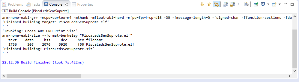 Nos próximos posts as configurações ficarão mais fáceis. E o tamanho do binário… Bem, espere o próximo post para mais detalhes.