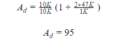 Vamos utilizar as equações conhecidas deste circuito para calcular o ganho diferencial Ad: