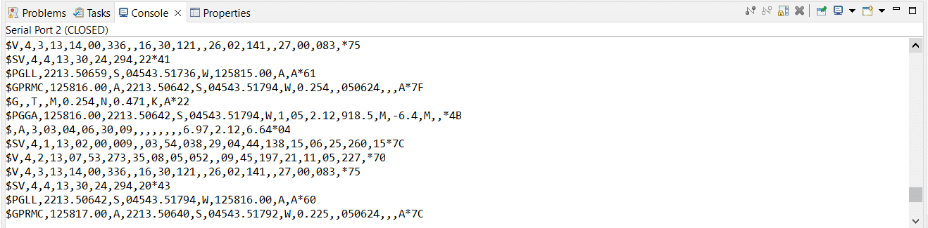 - $GPRMC fornece hora, data, latitude, longitude, altitude e velocidade estimada.