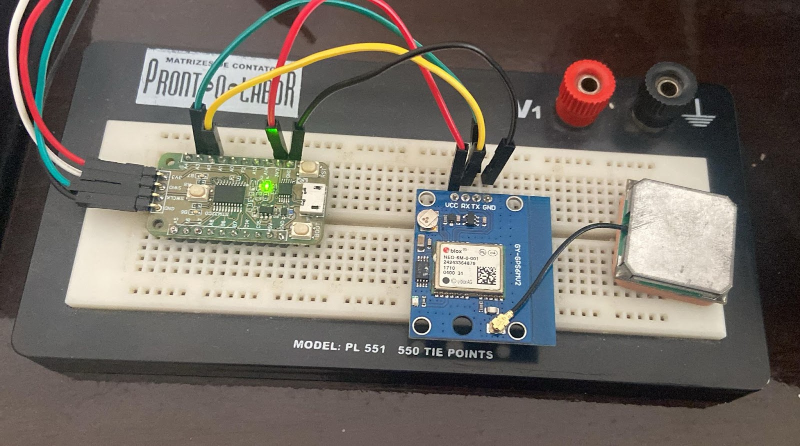 - Realize a gravação do código, aguarde até que o GPS indique que encontrou satélites. Quando o LED estiver piscando, conecte um cabo USB e abra o monitor serial para verificar os dados recebidos pelo GPS.