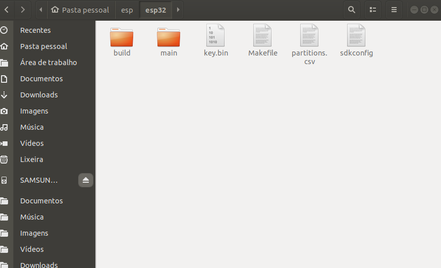 Utilizaremos o próprio script da IDF para criar uma chave (256b), mas você pode utilizar qualquer método ou chave que desejar. O comando exportará a chave no arquivo “key.bin”, que você deve deixar uma cópia dentro da pasta do seu projeto, ficando algo similar com o nosso: