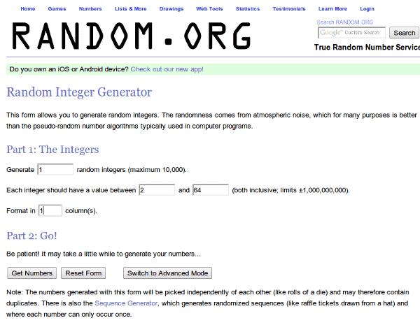 O questionário da promoção contou com 63 respostas com 100% de acerto. O site random.org foi a ferramenta utilizada para o sorteio. A figura abaixo mostra a configuração utilizada.