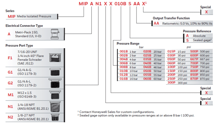 Figura 1: Exemplo de possíveis part numbers, permitindo mais 350 diferentes configurações. Para saber quais estão ativas, basta contatar o time de vendas da Honeywell Brasil.