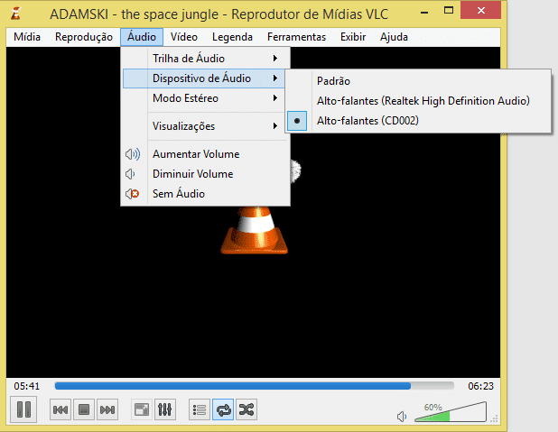 - Abra seu player favorito no computador e selecione a saída de áudio como demonstrado na figura a seguir.