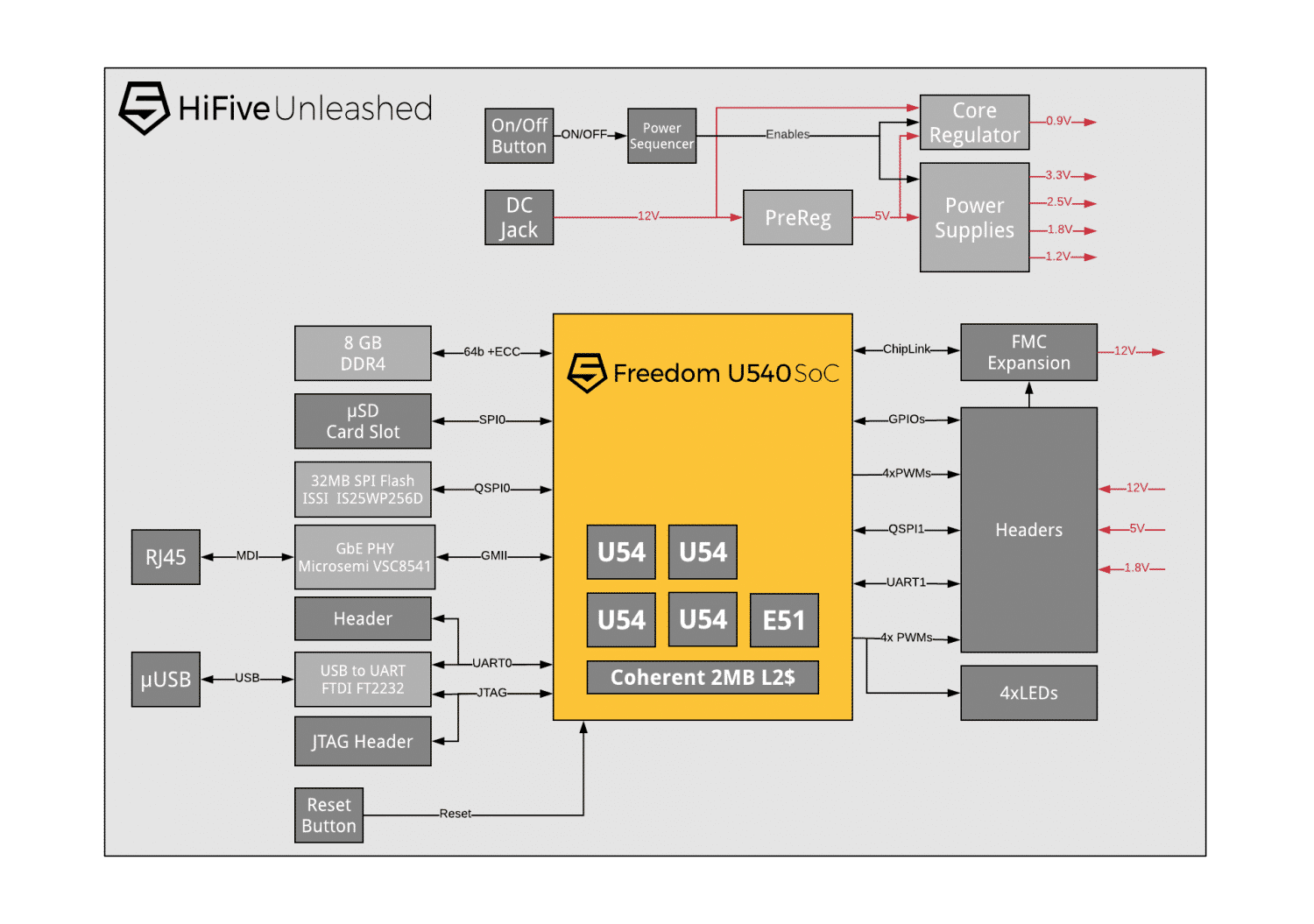 Com o Freedom U540, o primeiro RISC-V, 64 bits 4 + 1 multicore SoC, com suporte para sistemas operacionais complexos, como o Linux, a placa de desenvolvimento HiFive Unleashed estimulará o desenvolvimento de software de código aberto. A CPU subjacente, o U54-MC Core IP, é ideal para aplicações que necessitam de suporte de um sistema operacional completo, como por exemplo inteligência artificial, machine learning, gateways e dispositivos IoT.