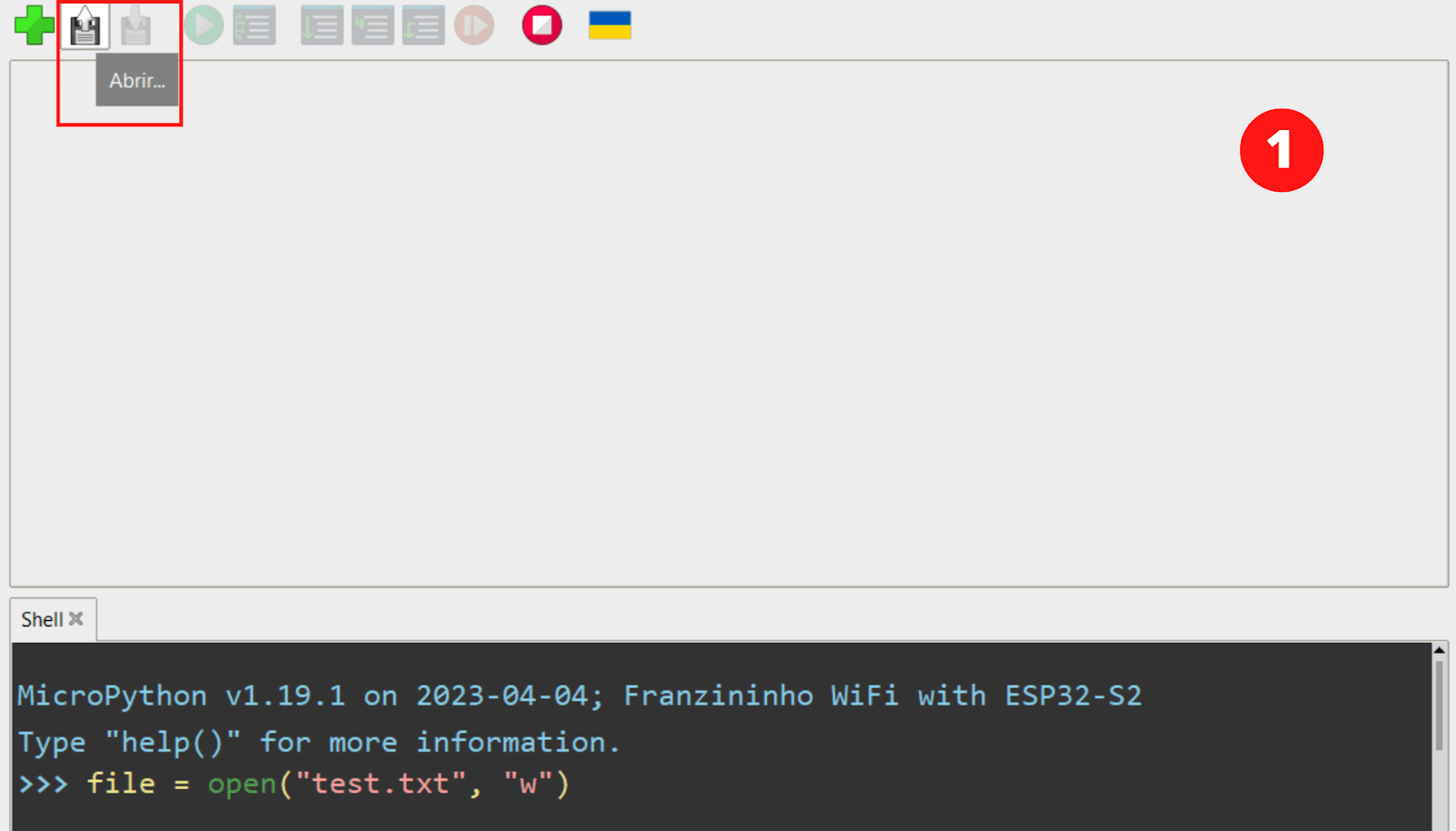 file = open("test.txt", "w")Isso instrui o MicroPython a abrir um arquivo chamado “test.txt” para realizar uma escrita (“w” é a instrução de escrita). No momento o arquivo foi aberto mas não há nada nele, então digite: