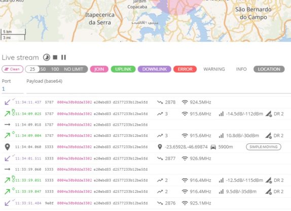 A partir daqui, no Network Server devem aparecer agora as mensagens que estão sendo recebidas pela rede pública: