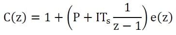 Como o controlador deve ser implementado em um microcontrolador, o compensador foi transformado para sua forma no tempo discreto utilizando uma transformada z. Assim, o integrador 1/s foi aproximado pelo método de Euler (integração retangular) para Ts/(z-1) para facilitar a implementação: