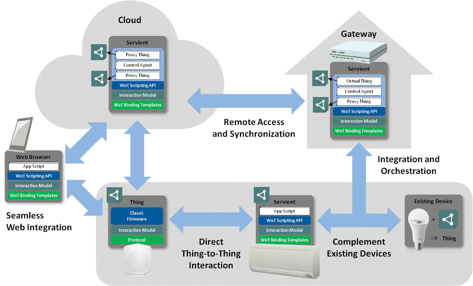 A diversidade de dispositivos e recursos, mesmo em uma única aplicação de IoT, requer um conjunto mais extenso de métodos padrão para lidar com as possíveis interações entre as várias partes de um sistema IoT (Figura 1). Além do World Wide Web Consortium (W3C), os organismos de normas e os grupos da indústria abordam o problema de interoperabilidade da IoT sob a perspectiva de seu próprio estatuto e domínio de especialização.
