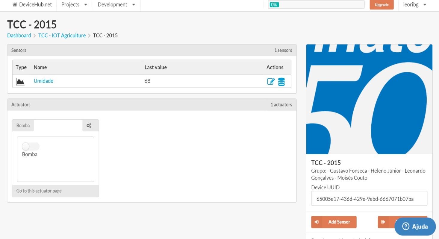 Sensores: Os sensores são componentes que armazenam dados enviados por dispositivos atrelados a eles. São gerados gráficos exibindo a variação da grandeza monitorada por cada sensor, permitindo melhor acompanhamento por parte do usuário.