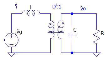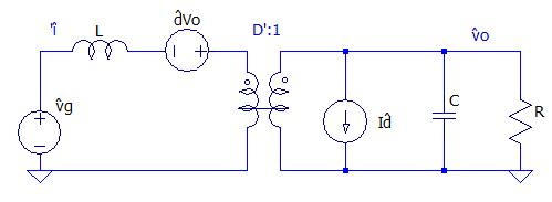 Com o circuito linearizado às pequenas variações é possível obter a função de transferência. Para esse circuito é interessante extrair as funções de transferência para a tensão na carga e corrente no indutor para as variações de ciclo de trabalho, sendo essas : e .