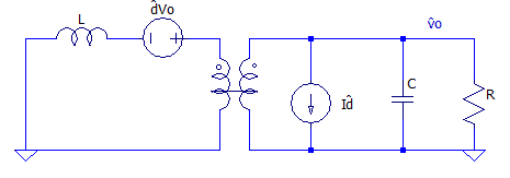 Utilizando apenas os termos de primeira ordem, a equação linearizada de tensão no indutor é , o circuito pode ser visualizado na Figura 13.