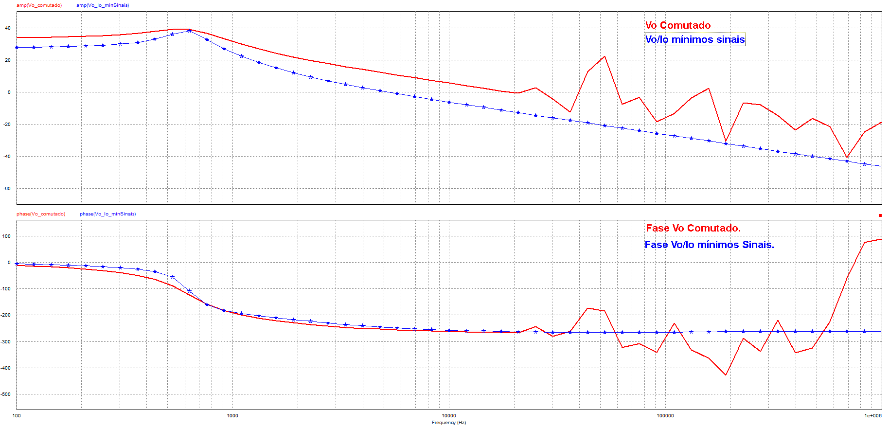 Figura 25: Resposta em frequência da função e modelo comutado. Estimulado por .