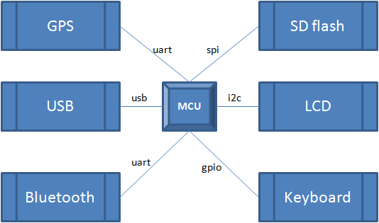 A figura ilustra uma aplicação onde temos diversos periféricos, que compõem como um todo o aplicativo do nosso dispositivo. Com o uso de Threads podemos dividir esse aplicativo em outros pequenos módulos, responsáveis por uma parte específica, como receber dados do Bluetooth, tratamento de strings NMEA de um GPS, e atualização de um Display, cada uma com sua prórpria região de memória e contexto relevante.