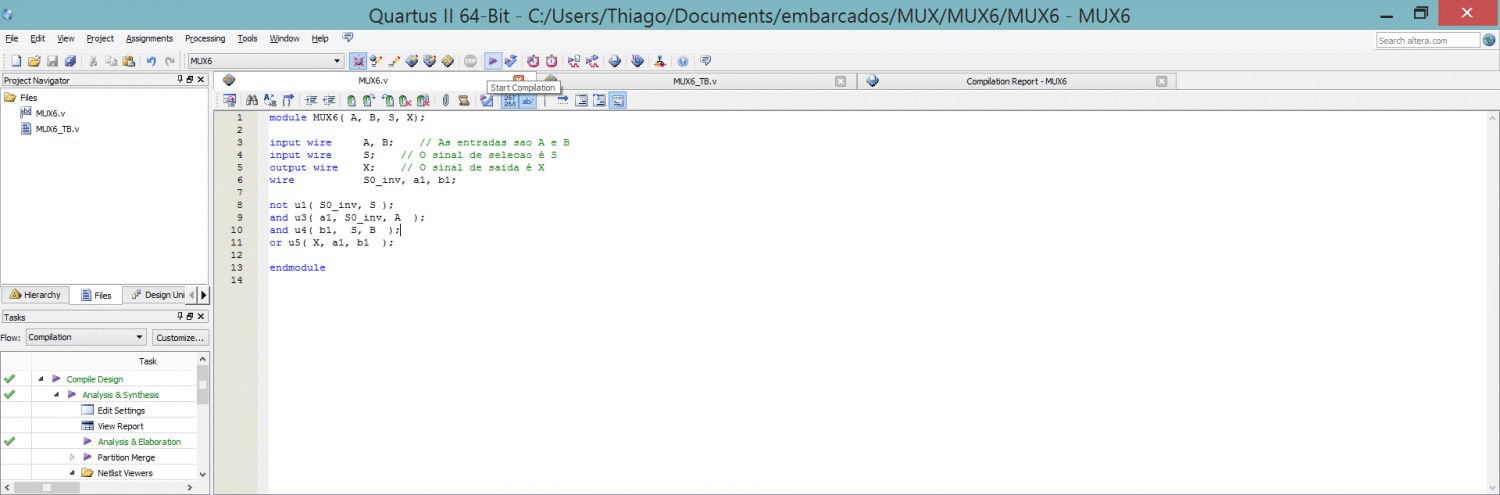 Então terá a seguinte visão. Clique em Start Compilation, um símbolo parecido com Play na barra superior.