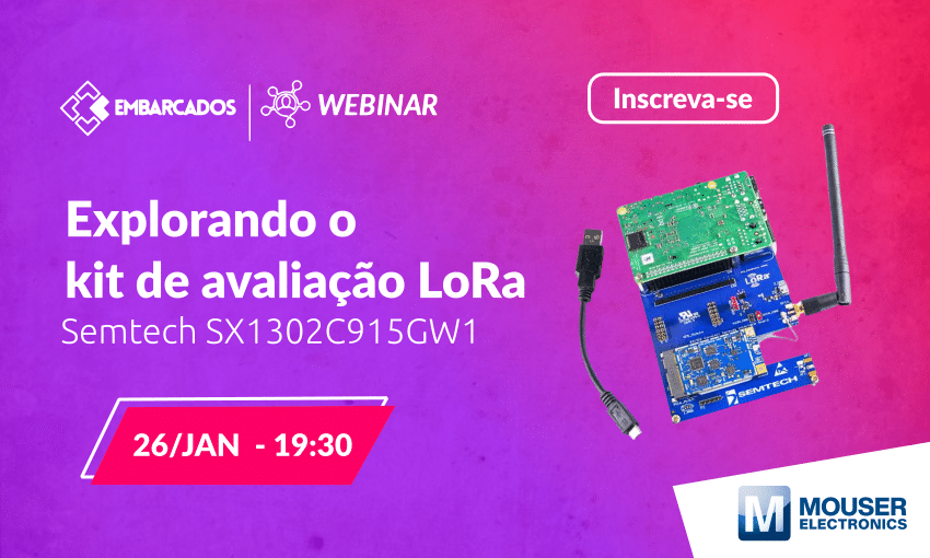 Sortearemos um kit SX1302C915GW1 ao final do webinar para os participantes que estiverem presentes no webinar ao vivo. Esse sorteio é um oferecimento da Mouser Electronics.