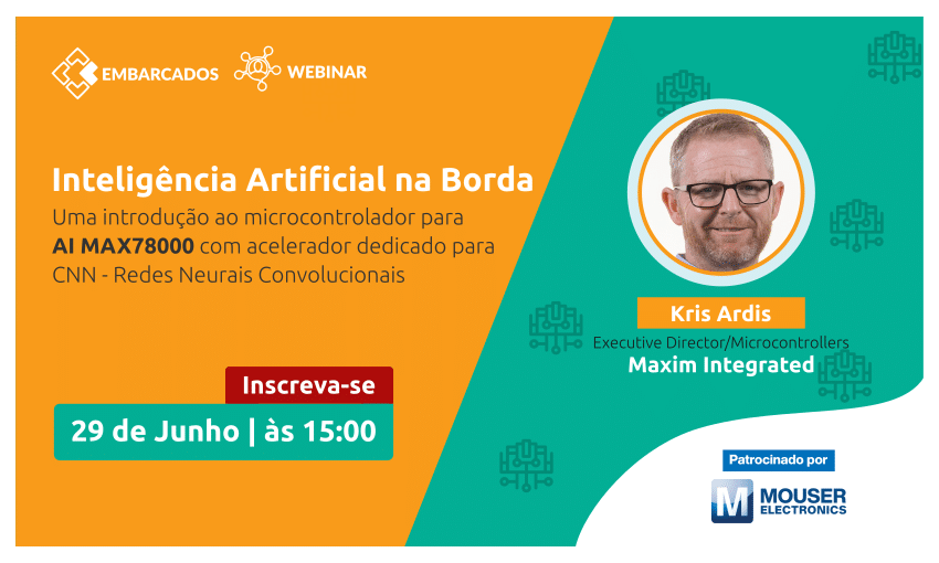 Introdução ao MAX78000 uma nova geração de microcontrolador para AI da MAXIM INTEGRATED com acelerador dedicado para Rede Neural Convolucional (CNN) , ganhador de diversos prêmios mundiais de AI / Machine Learning Embedded . Foi desenvolvido para permitir que as soluções de redes neurais sejam executadas na borda com baixíssimo consumo de energia. Agora até os dispositivos pequenos e com restrições de consumo de energia podem ver e ouvir . Serão apresentados também as ferramentas para o desenvolvimento de aplicações e vários exemplos de uso desta tecnologia.