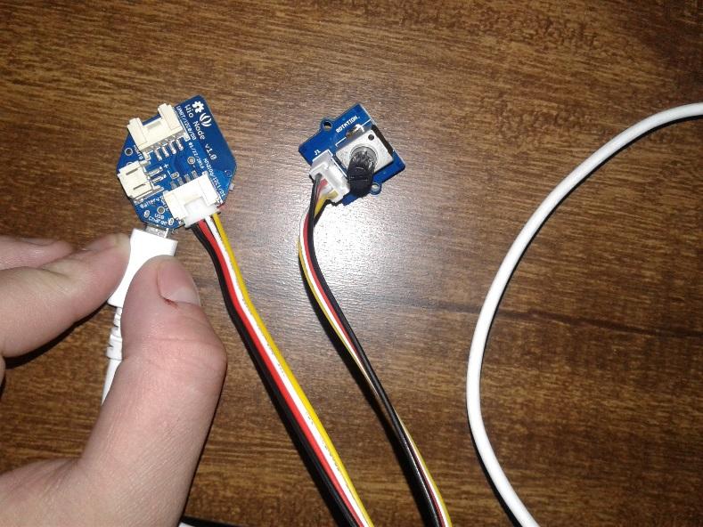 Para mostrarmos como a Wio Node funciona, utilizarei o potenciômetro que veio na Grove Starter Kit que recebi no evento Intel Roadshow realizado no final do ano passado. Todos os dispositivos são compatíveis para serem usados na placa Wio Node.